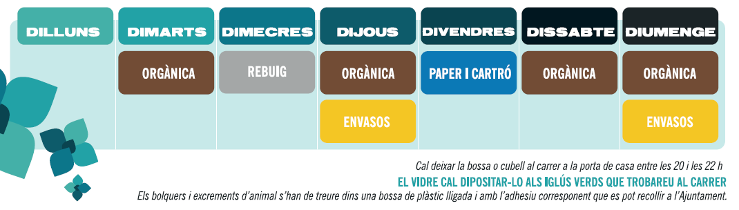 Podeu consultar aquí el calendari de recollida selectiva de residus en diferents idiomes.
