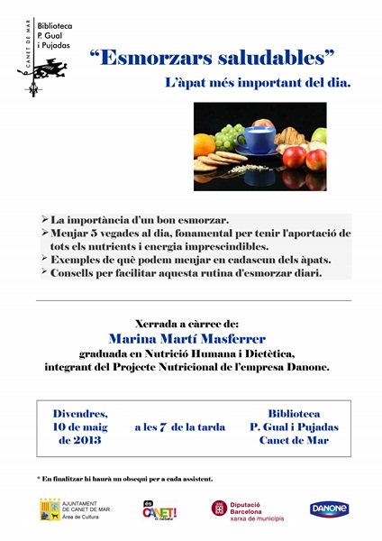 Xerrada a càrrec de: Marina Martí Masferrer, graduada en Nutrició Humana i Dietètica, integrant del Projecte Nutricional de l´empresa Danone