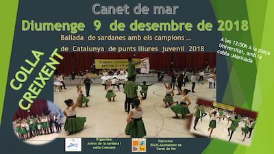 Celebració de la Colla Creixent amb el poble de Canet del títol aconseguit el 25 de novembre a Montblanc. Campions de Catalunya juvenils de punts lliures 2018.