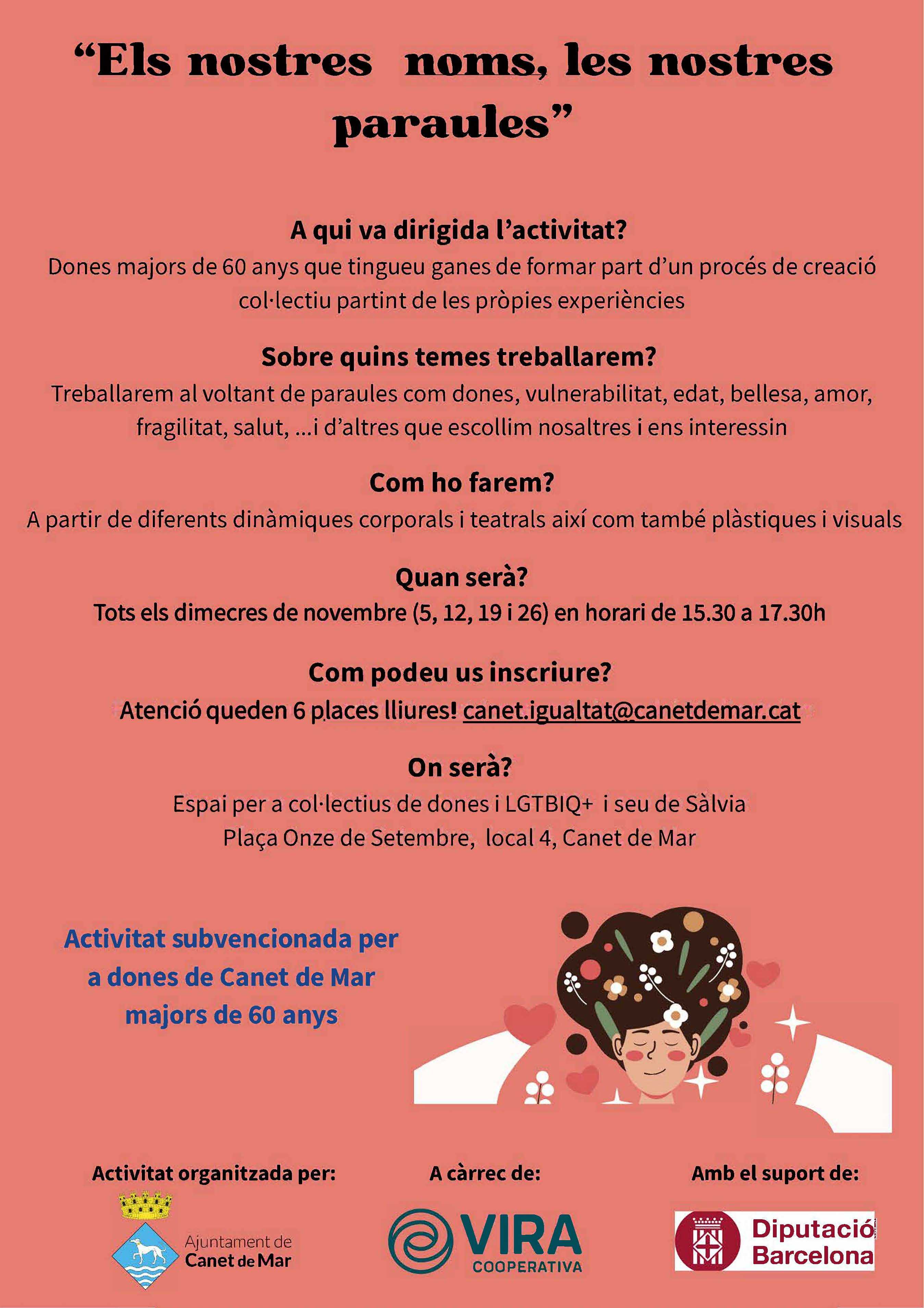 Si estàs interessada, inscriu-te a través del correu de l'àrea d'igualtat abans del 3 de novembre. Només cal que ens facis arribar el el teu nom complet.