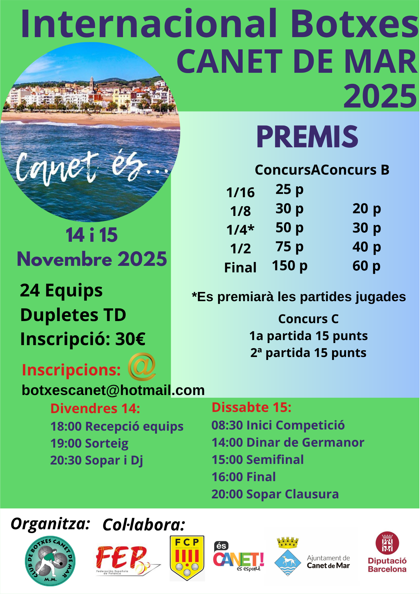 Divendres a partir de les 19h, sorteig dels equip i sopar de benvinguda.