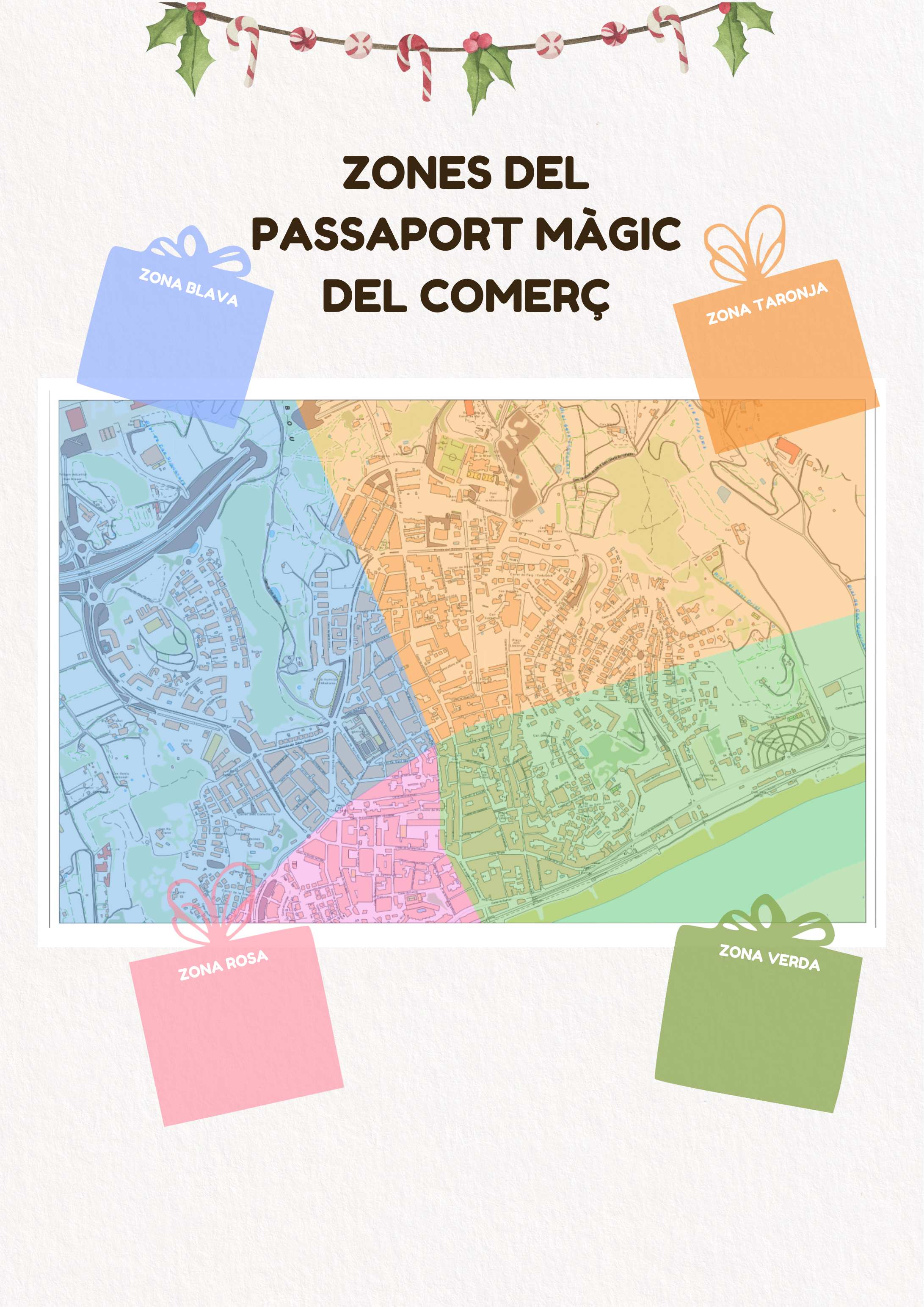 Funcionament del Passaport MàgicLa campanya divideix el municipi en quatre zones comercials, cada una identificada amb un color diferent. Els establiments participants disposaran d’un cartell distintiu amb el color de la seva zona, que es podrà consultar al mapa adjunt.