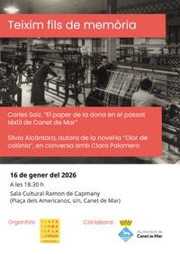 L'acte versa sobre el passat tèxtil des de dos punts de vista: el local, de la mà de l'historiador Carles Saiz, que es centrarà en les vivències de les dones, i de la Sílvia Alcàntara, que, a través de la seva novel·la "Olor de colònia", ens farà endinsar en la vida en una colònia tèxtil de Catalunya. Aquesta última part serà mitjançant una conversa amb la periodista local Clara Palomero.