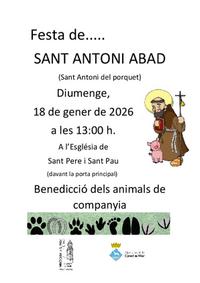 Es beneirà als animals de companyia amb motiu de la festa de Sant Antoni Abat, davant la porta principal de l'Església.