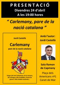Presentació del llibre Carlemany, pare de la nació catalana, pel seu autor Jordi Castellà, on s'explica l'origen del nom Cathalunya, de la senyera, de la llengua i dels fundadors.