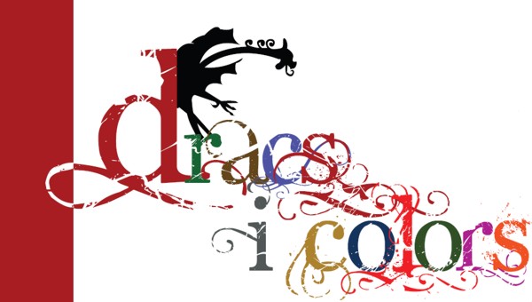 Dracs i Colors està dividida en dues parts, una per donar relleu a la figura del drac, un element màgic que estava situat a l´entrada de molts edificis modernistes, l'altra per recullir un collage de colors amb diferents fotografies que contenen detalls d´edificis modernistes junt amb petits poemes de Montse Assens.